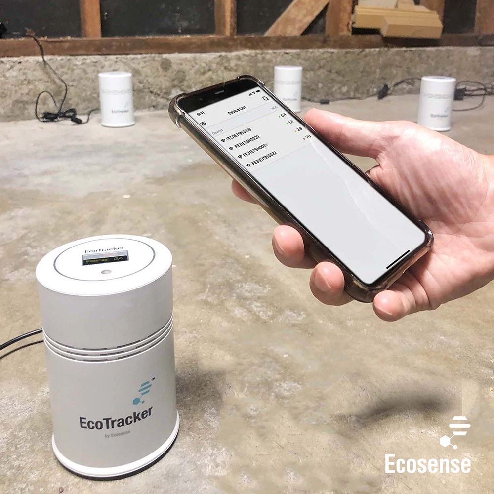 EcoTracker-lösningen paketerar 4 högpresterande radondetektorer som gör det möjligt för radonkonsulter att samtidigt mäta på flera platser i bostäder, skolor, vårdcentraler eller kommersiella byggnader. Att mäta radonhalterna vid exakt samma tidpunkt möjliggör en enkel och tydlig identifiering av radonproblemet. Var och en av detektorerna använder Bluetooth Low Energy (BLE) för att skicka data till en app installerad på telefonen eller surfplattan. I applikationen visas de 4 radondetekterna samtidigt.